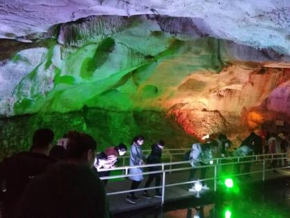 The next day the whole area can be seen everywhere with the water mountain. Close to nature's first station Tanxi Hill. In spite of this, we have no fear at all. Everyone advances toward their destination with full enthusiasm and upward mobility. We stop and go, take a rest, take a look, laughing or leaving a shadow, and enjoy the beautiful scenery. Tanxi Hill glass bridge, we exclaimed, all kinds of self-poses a variety of poses, playing enjoyable. Next,the well-known ecological, cultural and Kaiyuan cave is a great wonders of nature, all kinds of colorful, vivid, breathtaking stalactites, stalagmites, rocky and other natural scenes. We enjoy the share of nature. About 3 pm, everyone drag slightly tired body, with unresolved feelings.